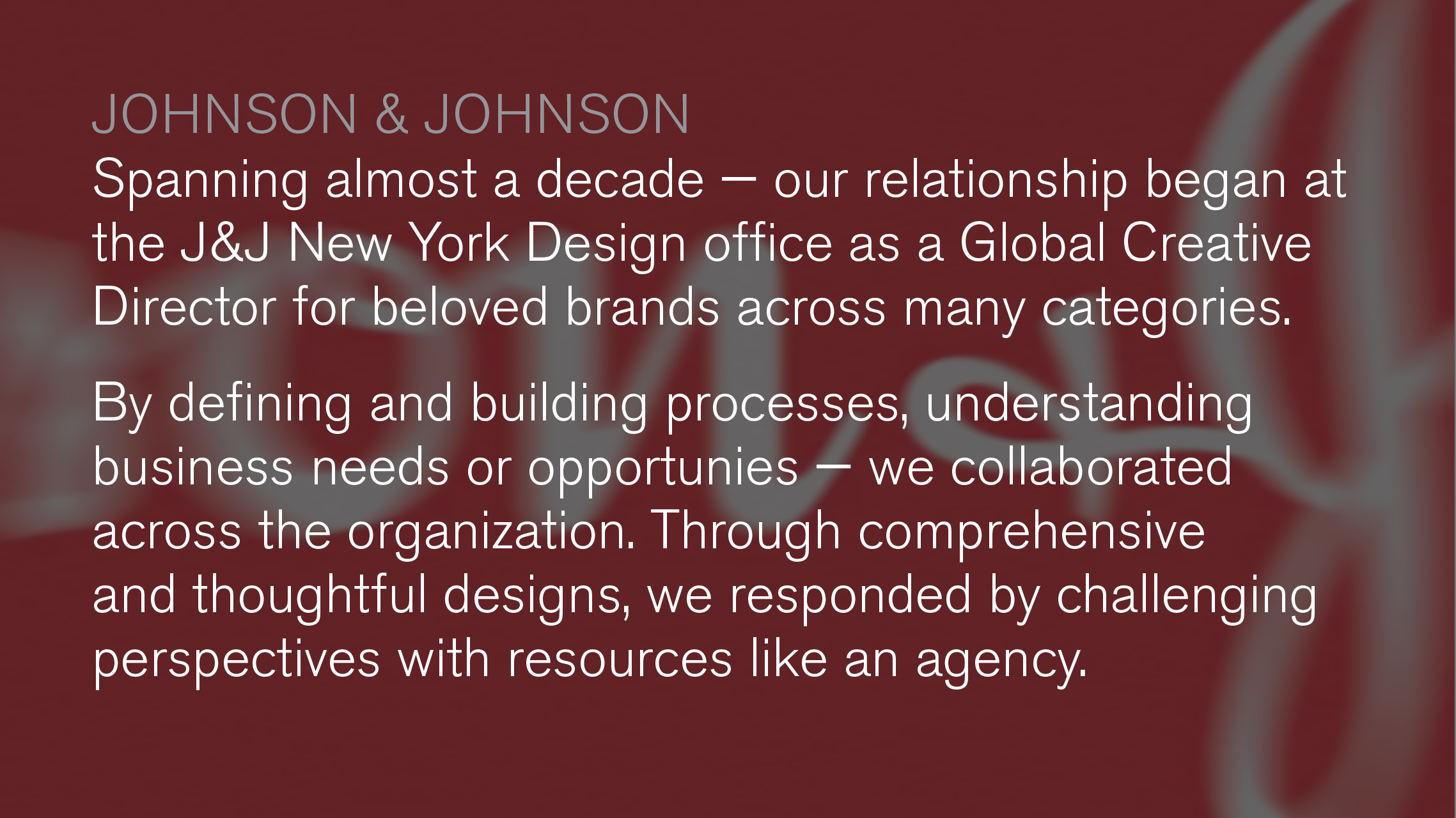 Created as Global Creative Director at Johnson & Johnson